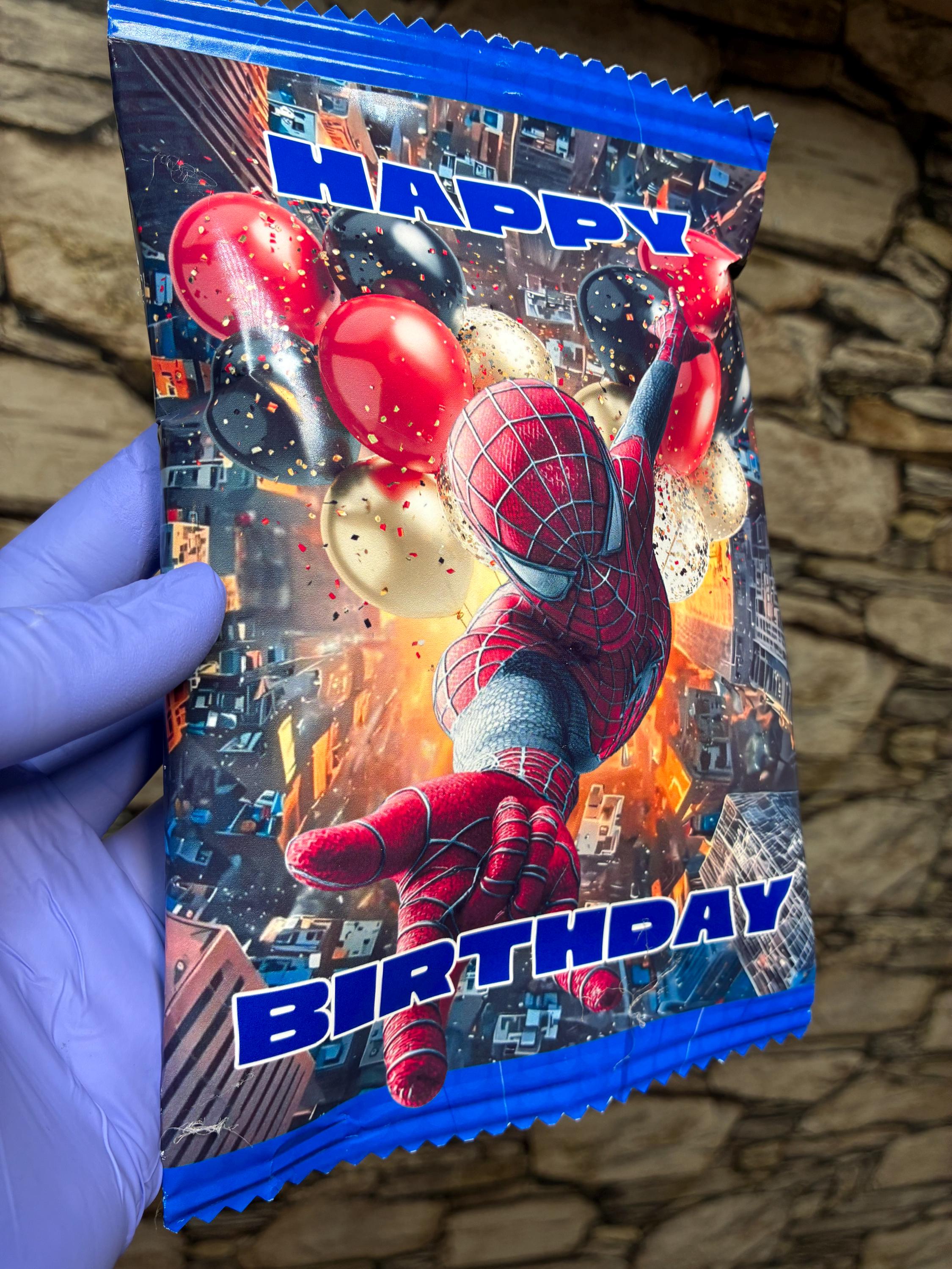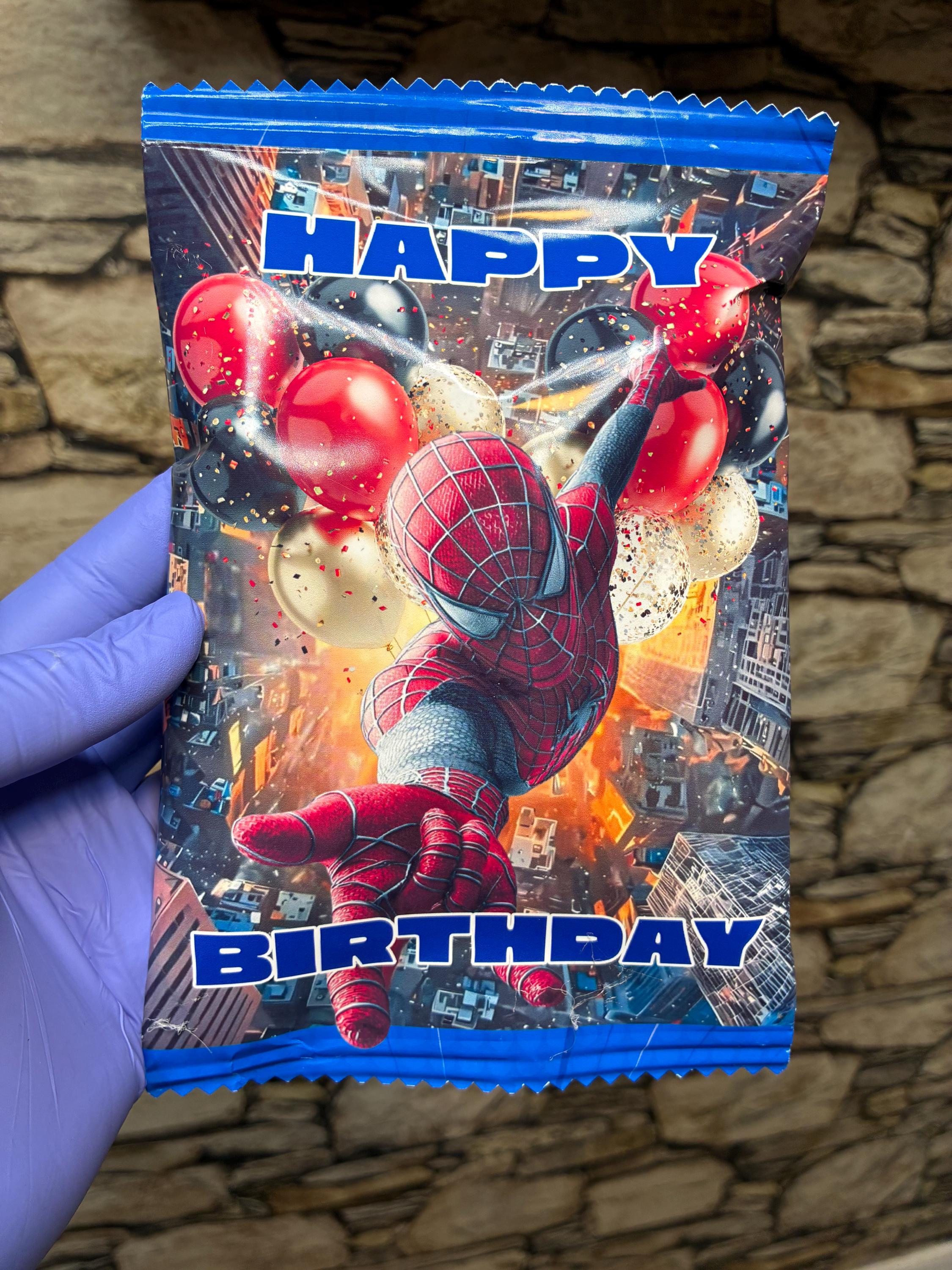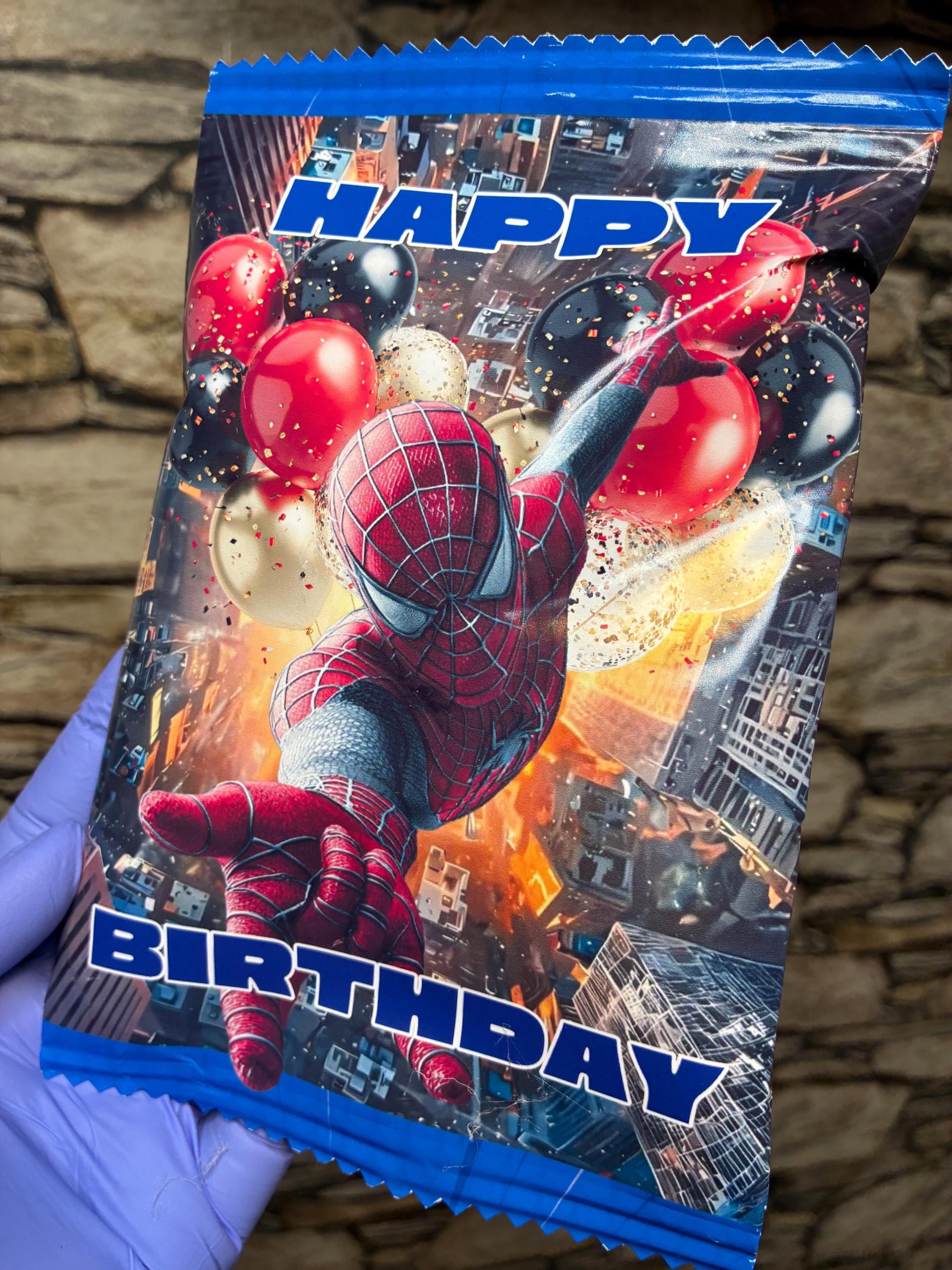 Make your child’s birthday party extra special with this Super Hero web-inspired chip bag wrapper. Perfect for boy birthday parties, comic theme celebrations, and superhero party favors. This is a DIGITAL DOWNLOAD you can print at home or through a professional printer.